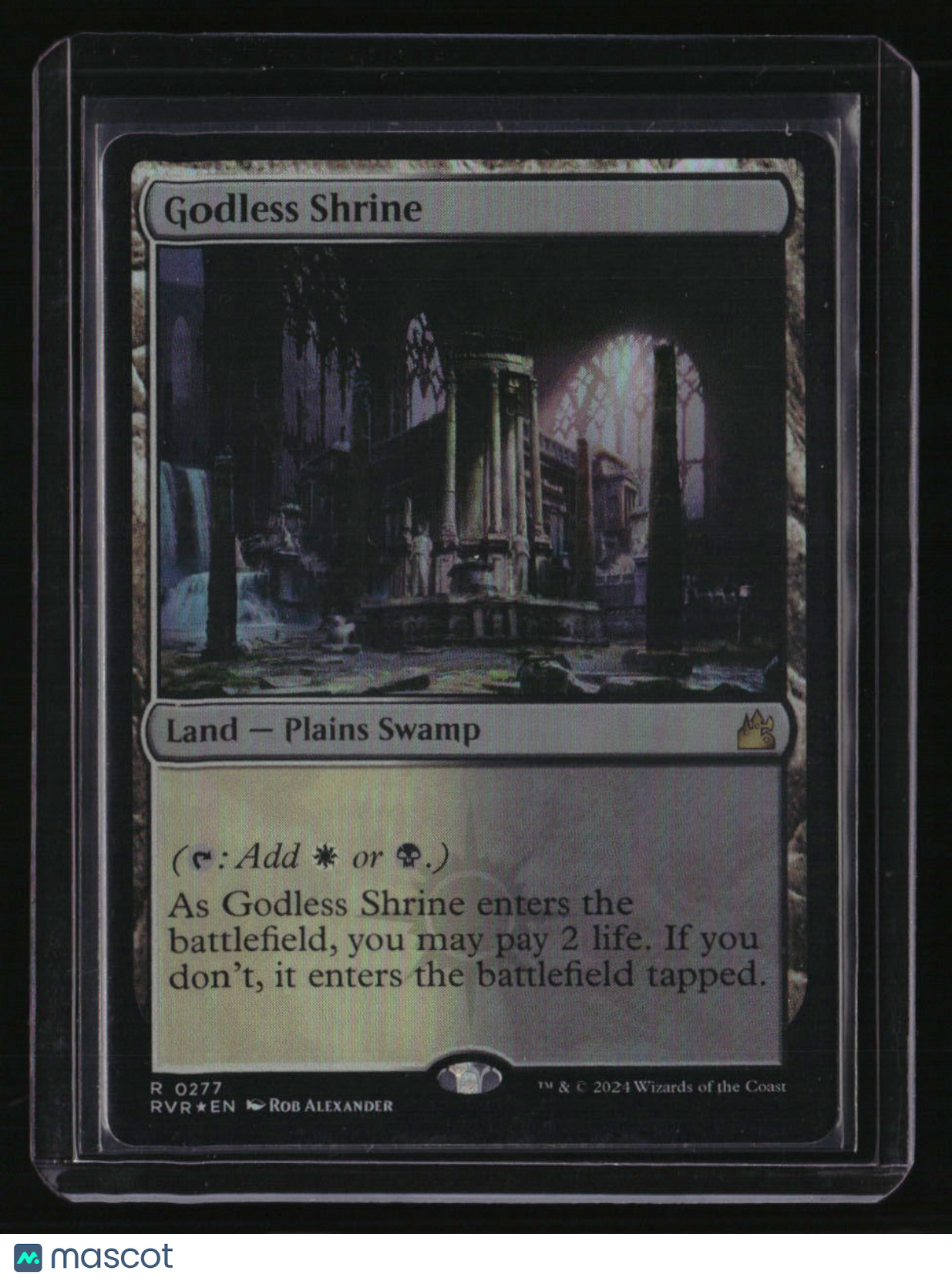 | *This is a Single Trading Card* | *Discounts are not available on Single Trading Cards* | This is a nice example of a Ravnica Remastered #277 Godless Shrine Rare. Please check out our other listings for more great cards. Thank you for your interest in one of our cards!!! Prior to making any bids/purchases, I would kindly ask you to read the information below: Item Condition Please see the provided pictures for the condition of the card or item, pictures of the front and back are provided for your review. We cannot accommodate requests for additional pictures. Any notable flaws or damage to this item will be noted in this listing. Please use the attached photos provided for your own assessment. Graded card cases may come with some minor wear/tear, surface scratch, chipped, or blemish. There are no partial refunds or returns because of the case condition. All single cards will come in protective cases. If you purchase a listing that's sold as a lot it may come in snap cases or sealed in a team bag, and not all cards will be individually sleeved and top loaded in all lots. Raw cards are sold as such, with no guarantees of potential and/or expected grades. All cards are sold as is, with no returns or refunds. Listed With Mascot.