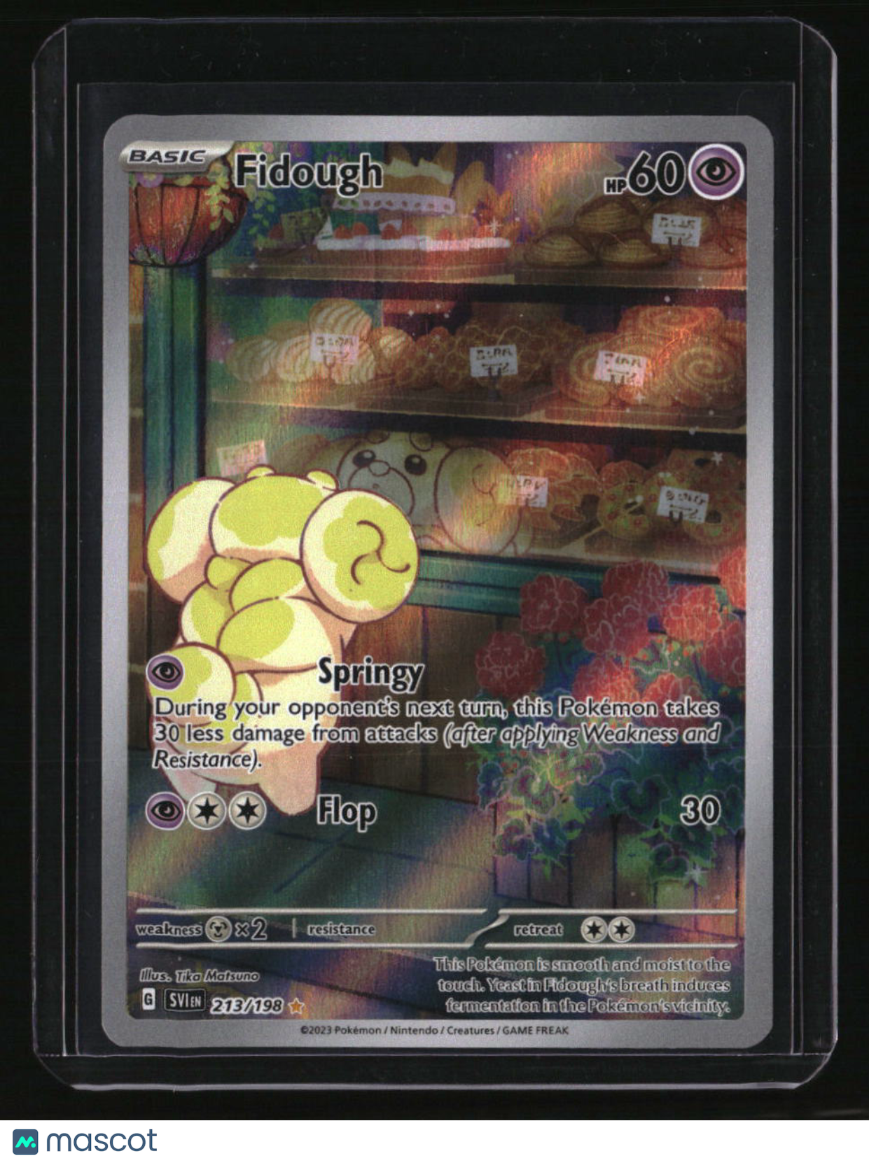 | *This is a Single Trading Card* | *Discounts are not available on Single Trading Cards* | This is a nice example of a SV01: Scarlet & Violet Base Set #213/198 Fidough . Please check out our other listings for more great cards. Thank you for your interest in one of our cards!!! Prior to making any bids/purchases, I would kindly ask you to read the information below: Item Condition Please see the provided pictures for the condition of the card or item, pictures of the front and back are provided for your review. We cannot accommodate requests for additional pictures. Any notable flaws or damage to this item will be noted in this listing. Please use the attached photos provided for your own assessment. Graded card cases may come with some minor wear/tear, surface scratch, chipped, or blemish. There are no partial refunds or returns because of the case condition. All single cards will come in protective cases. If you purchase a listing that's sold as a lot it may come in snap cases or sealed in a team bag, and not all cards will be individually sleeved and top loaded in all lots. Raw cards are sold as such, with no guarantees of potential and/or expected grades. All cards are sold as is, with no returns or refunds. Listed With Mascot.