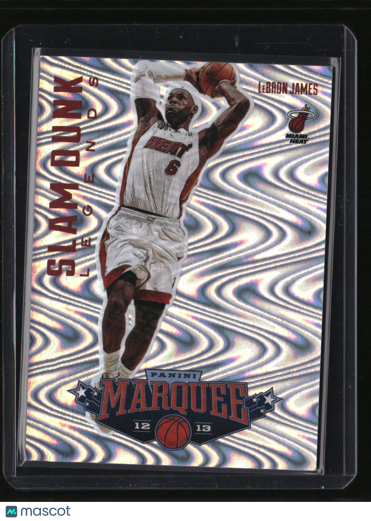 | *This is a Single Trading Card* | *Discounts are not available on Single Trading Cards* | This is a nice example of a 2012-13 Panini Marquee #1 LeBron James Slam Dunk Legends . Please check out our other listings for more great cards. Thank you for your interest in one of our cards!!! Prior to making any bids/purchases, I would kindly ask you to read the information below: Item Condition Please see the provided pictures for the condition of the card or item, pictures of the front and back are provided for your review. We cannot accommodate requests for additional pictures. Any notable flaws or damage to this item will be noted in this listing. Please use the attached photos provided for your own assessment. Graded card cases may come with some minor wear/tear, surface scratch, chipped, or blemish. There are no partial refunds or returns because of the case condition. All single cards will come in protective cases. If you purchase a listing that's sold as a lot it may come in snap cases or sealed in a team bag, and not all cards will be individually sleeved and top loaded in all lots. Raw cards are sold as such, with no guarantees of potential and/or expected grades. All cards are sold as is, with no returns or refunds. Listed With Mascot.