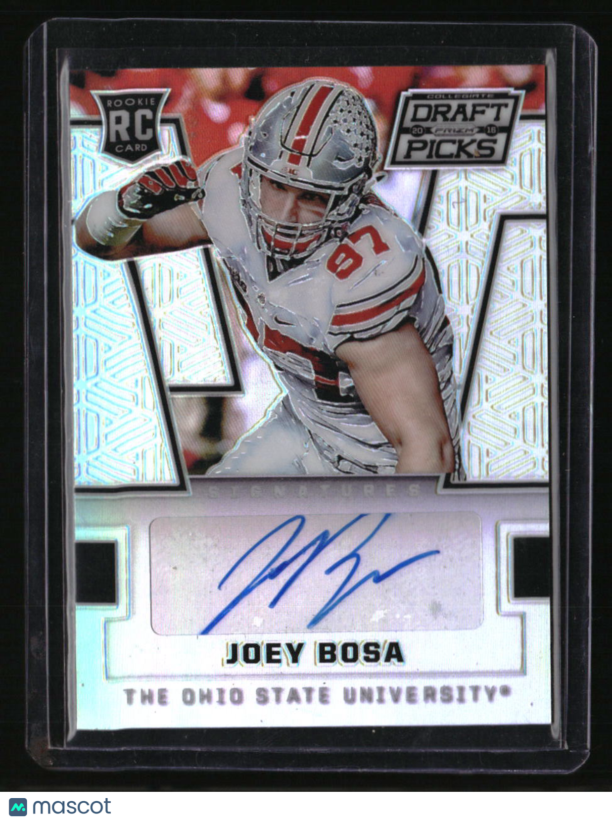 | *This is a Single Trading Card* | *Discounts are not available on Single Trading Cards* | This is a nice example of a 2016 Panini Prizm Collegiate Draft Picks #101 Joey Bosa Autographs AU. Please check out our other listings for more great cards. Thank you for your interest in one of our cards!!! Prior to making any bids/purchases, I would kindly ask you to read the information below: Item Condition Please see the provided pictures for the condition of the card or item, pictures of the front and back are provided for your review. We cannot accommodate requests for additional pictures. Any notable flaws or damage to this item will be noted in this listing. Please use the attached photos provided for your own assessment. Graded card cases may come with some minor wear/tear, surface scratch, chipped, or blemish. There are no partial refunds or returns because of the case condition. All single cards will come in protective cases. If you purchase a listing that's sold as a lot it may come in snap cases or sealed in a team bag, and not all cards will be individually sleeved and top loaded in all lots. Raw cards are sold as such, with no guarantees of potential and/or expected grades. All cards are sold as is, with no returns or refunds. Listed With Mascot.