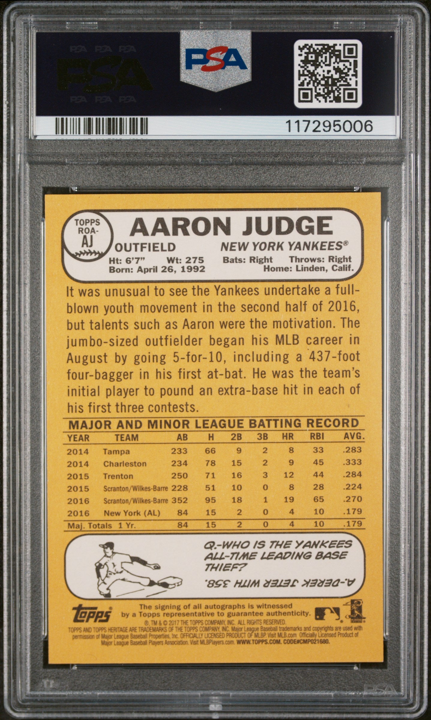 2017 Topps Heritage Real One Autographs Aaron Judge Real One Autographs PSA 10