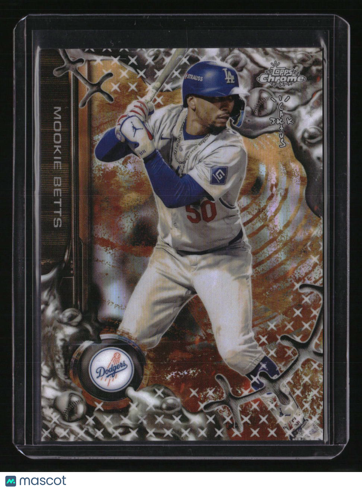 | *This is a Single Trading Card* | *Discounts are not available on Single Trading Cards* | This is a nice example of a 2025 Topps Cosmic Chrome x Cactus Jack #47 Mookie Betts . Please check out our other listings for more great cards. Thank you for your interest in one of our cards!!! Prior to making any bids/purchases, I would kindly ask you to read the information below: Item Condition Please see the provided pictures for the condition of the card or item, pictures of the front and back are provided for your review. We cannot accommodate requests for additional pictures. Any notable flaws or damage to this item will be noted in this listing. Please use the attached photos provided for your own assessment. Graded card cases may come with some minor wear/tear, surface scratch, chipped, or blemish. There are no partial refunds or returns because of the case condition. All single cards will come in protective cases. If you purchase a listing that's sold as a lot it may come in snap cases or sealed in a team bag, and not all cards will be individually sleeved and top loaded in all lots. Raw cards are sold as such, with no guarantees of potential and/or expected grades. All cards are sold as is, with no returns or refunds. Listed With Mascot.