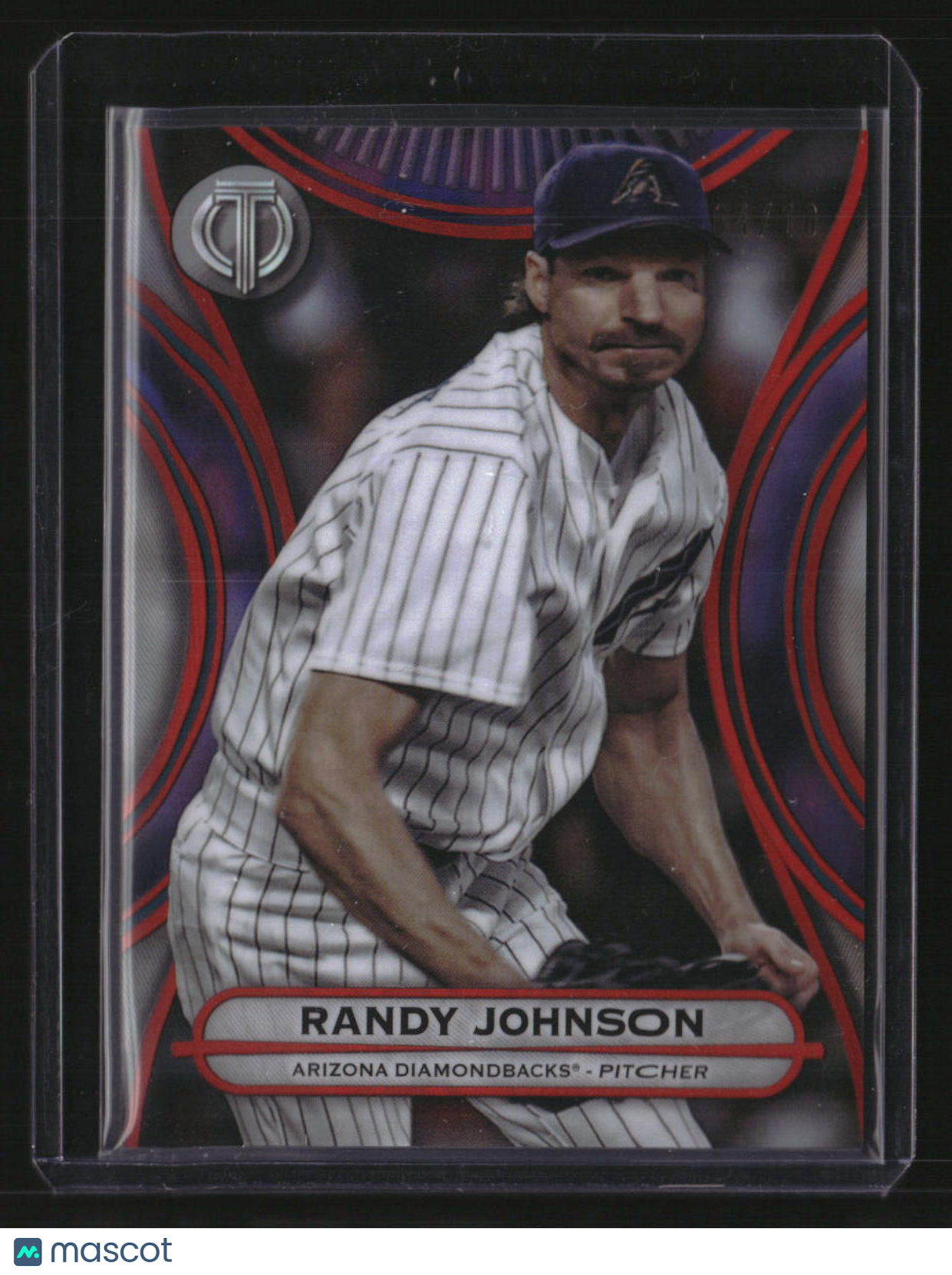| *This is a Single Trading Card* | *Discounts are not available on Single Trading Cards* | This is a nice example of a 2025 Topps Tribute #30 Randy Johnson Red SN. Please check out our other listings for more great cards. Thank you for your interest in one of our cards!!! Prior to making any bids/purchases, I would kindly ask you to read the information below: Item Condition Please see the provided pictures for the condition of the card or item, pictures of the front and back are provided for your review. We cannot accommodate requests for additional pictures. Any notable flaws or damage to this item will be noted in this listing. Please use the attached photos provided for your own assessment. Graded card cases may come with some minor wear/tear, surface scratch, chipped, or blemish. There are no partial refunds or returns because of the case condition. All single cards will come in protective cases. If you purchase a listing that's sold as a lot it may come in snap cases or sealed in a team bag, and not all cards will be individually sleeved and top loaded in all lots. Raw cards are sold as such, with no guarantees of potential and/or expected grades. All cards are sold as is, with no returns or refunds. Listed With Mascot.
