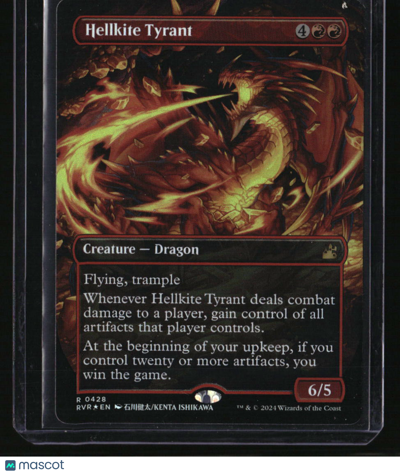| *This is a Single Trading Card* | *Discounts are not available on Single Trading Cards* | This is a nice example of a Ravnica Remastered #428 Hellkite Tyrant (Anime Borderless) Rare. Please check out our other listings for more great cards. Thank you for your interest in one of our cards!!! Prior to making any bids/purchases, I would kindly ask you to read the information below: Item Condition Please see the provided pictures for the condition of the card or item, pictures of the front and back are provided for your review. We cannot accommodate requests for additional pictures. Any notable flaws or damage to this item will be noted in this listing. Please use the attached photos provided for your own assessment. Graded card cases may come with some minor wear/tear, surface scratch, chipped, or blemish. There are no partial refunds or returns because of the case condition. All single cards will come in protective cases. If you purchase a listing that's sold as a lot it may come in snap cases or sealed in a team bag, and not all cards will be individually sleeved and top loaded in all lots. Raw cards are sold as such, with no guarantees of potential and/or expected grades. All cards are sold as is, with no returns or refunds. Listed With Mascot.