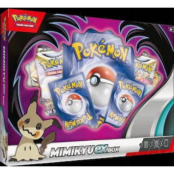 Each Mimikyu EX box contains : - [1] foil promo card featuring Mimikyu ex - [1] foil card featuring Greavard - [1] oversize foil card featuring Mimikyu ex - [4] Pokemon TCG booster packs - [1] code card for Pokemon TCG Live