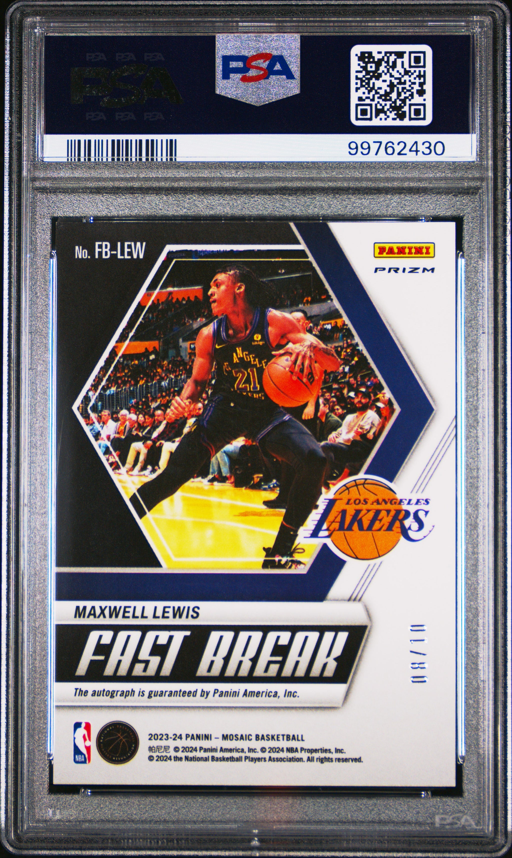 2023 Panini Mosaic Fast Break Autographs Maxwell Lewis Gold PSA 10