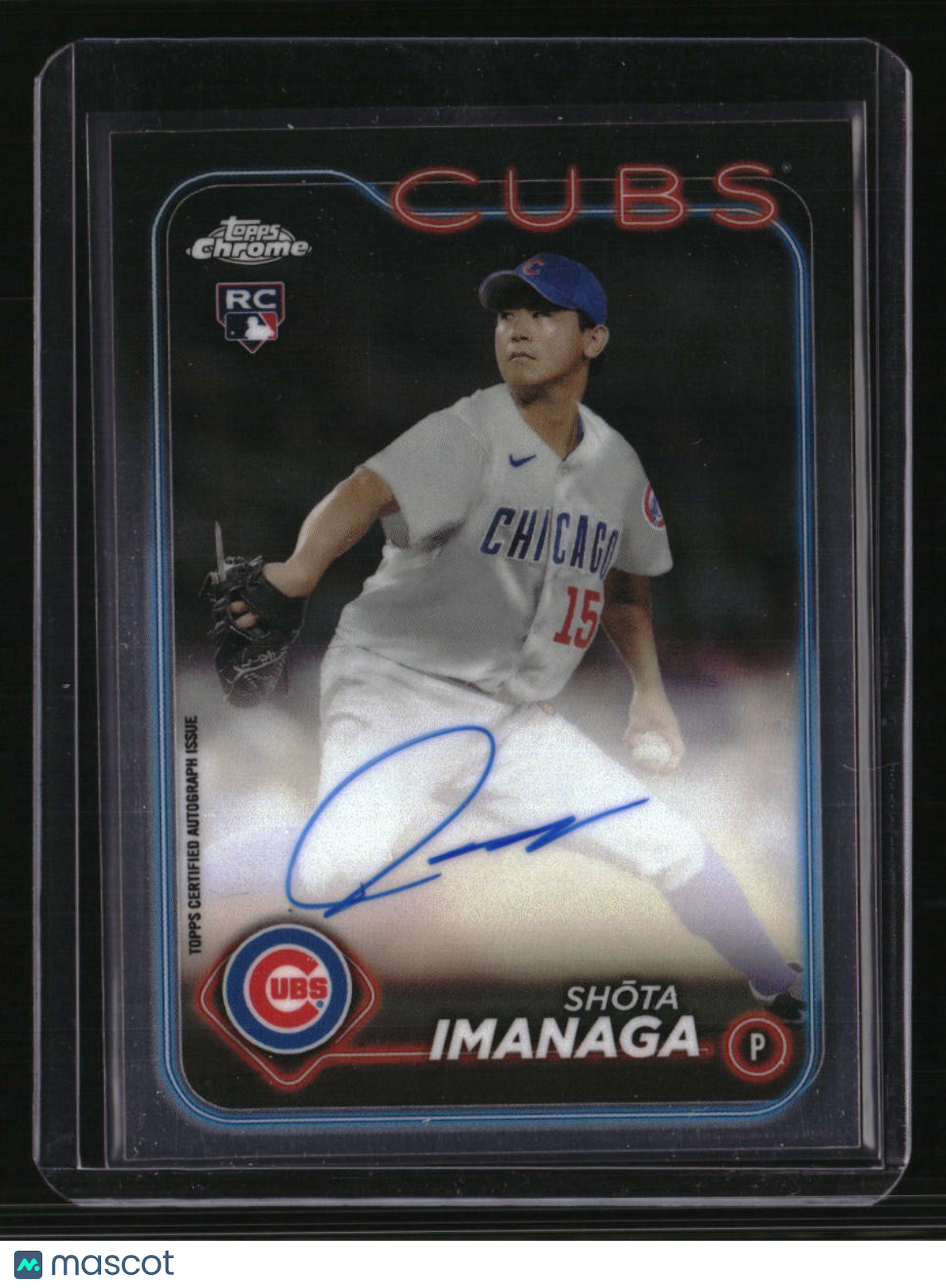 | *This is a Single Trading Card* | *Discounts are not available on Single Trading Cards* | This is a nice example of a 2024 Topps Chrome #RA-SI Shōta Imanaga Rookie Autographs AU. Please check out our other listings for more great cards. Thank you for your interest in one of our cards!!! Prior to making any bids/purchases, I would kindly ask you to read the information below: Item Condition Please see the provided pictures for the condition of the card or item, pictures of the front and back are provided for your review. We cannot accommodate requests for additional pictures. Any notable flaws or damage to this item will be noted in this listing. Please use the attached photos provided for your own assessment. Graded card cases may come with some minor wear/tear, surface scratch, chipped, or blemish. There are no partial refunds or returns because of the case condition. All single cards will come in protective cases. If you purchase a listing that's sold as a lot it may come in snap cases or sealed in a team bag, and not all cards will be individually sleeved and top loaded in all lots. Raw cards are sold as such, with no guarantees of potential and/or expected grades. All cards are sold as is, with no returns or refunds. Listed With Mascot.